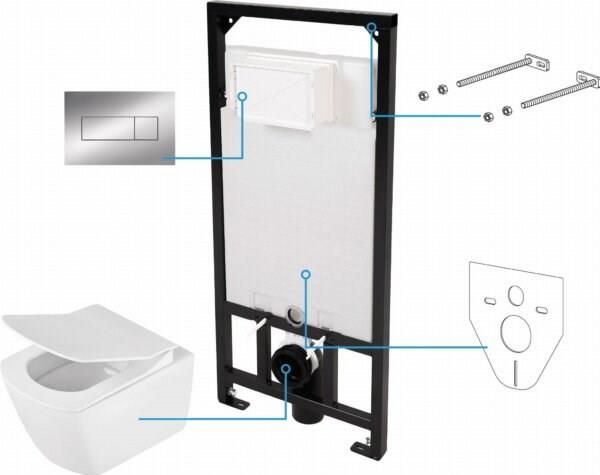 Właściwości:Deska typu slim: Tak Antybakteryjność: Tak Deska wolnoopadająca: Tak Szybkie wypinanie deski: Tak Typ: wisząca Wykończenie: biały Ukryte mocowania: Tak Rodzaj kołnierza: bezkołnierzowa Pojemność zbiornika [l]: 9 Podwójne spłukiwanie [l]: 3/6 Zawór przyłączeniowy G1/2": Tak Ciche spłukiwanie i napełnianie: Tak Przeznaczony do zabudowy lekkiej : Tak Regulacja wysokości stelaża [mm]: 200 Rozstaw śrub montażowych 180 mm i 230 mm: Tak Przeznaczony do zabudowy przed ścianą nośną: Tak Wykończenie: chrom Rodzaj przycisku: dwudzielny Rodzaj powierzchni: błysk Najważniejsze informacje W ofercie dedykowany środek bezpieczny dla czyszczonych powierzchni Miska bezkołnierzowa ułatwiająca utrzymanie czystości i higieny System montażu z ukrytymi mocowaniami Innowacyjny stelaż podtynkowy W zestawie wolnoopadająca deska sedesowa Powłoka antybakteryjna, zapobiegająca rozwojowi drobnoustrojów Przycisk dwudzielny, umożliwiający dostosowanie ilości wody użytej do spłukania, domyślnie ustawiony na poziomie 3l i 6l Deska wolnoopadająca - zapobiegająca głośnemu uderzeniu o miskę Twarda i wytrzymała ceramika, nie traci swoich właściwości przy długim użytkowaniu W ofercie dedykowany środek bezpieczny dla czyszczonych powierzchni Użycie dedykowanych środków powoduje, że powierzchnie nie niszczą się i na długo pozostają gładkie, ułatwiając codzienne sprzątanie. Specjalnie dobrany skład usuwa najczęściej spotykane zabrudzenia niezwykle skutecznie. Z drugiej strony preparaty są łagodne dla danego typu powierzchni (metal, granit, ceramika i inne), nie wchodząc z nimi w reakcje chemiczne. Preparaty są biodegradowalne i tym samym niegroźne dla środowiska. Ze środkami do czyszczenia Deante utrzymanie nienagannego porządku będzie niezwykle proste! Miska bezkołnierzowa ułatwiająca utrzymanie czystości i higieny Bezkołnierzowe miski zostały zaprojektowane w taki sposób, aby, by sprzyjać łatwemu utrzymaniu czystości, bez potrzeby używania agresywnych środków czyszczących i czasochłonnego czyszczenia. Brak zawiniętego wewnętrznego rantu sprawia, że w misce nie zbierają się trudne do usunięcia zabrudzenia. Miskę o wygodnym, opływowym kształcie wystarczy podczas sprzątania przetrzeć miękką ściereczką, a podczas spłukiwania strumień wody swobodnie opływa całą jej wewnętrzną powierzchnię. System montażu z ukrytymi mocowaniami Niewidoczny system mocujący sprawia, że wszystkie elementy montażowe są zamaskowane. Zdecydowanie poprawia to wygląd całej łazienki. Brak rantów i wystających śrub zapewnia dodatkową wygodę przy czyszczeniu armatury. Dzięki temu utrzymanie higieny będzie łatwiejsze niż kiedykolwiek wcześniej. Ceramika ma gładką powierzchnię i prezentuje się niezwykle elegancko. Innowacyjny stelaż podtynkowy Łatwiejszy i szybszy montaż zapewnia nowatorski zbiornik z nowym jednoczęściowym zaworem kątowym firmy Schell. Dzięki otworom w ościeżnicach system montażowy można łatwo przymocować do konstrukcji z płyt gipsowo-kartonowych, pomieszczeń mieszkalnych i budynków drewnianych. Zawór napełniający jest cichy, szybki i wyjątkowo odporny na zanieczyszczenia w wodzie. Nowe zawiasy do zbiorników z dwuskładnikową izolacją skutecznie chronią przed hałasem. Stelaż podtynkowy posiada zestaw do montażu Easy Lock, który zapewnia szybszą i łatwiejszą instalację. W zestawie wolnoopadająca deska sedesowa W komplecie znajduje się deska wolnoopadająca. Dzięki specjalnym stoperom amortyzującym deska opuszcza się wolno i nie uderza o miskę. Tym samym zapobiega jej uszkodzeniu oraz redukuje niepotrzebny hałas. Komplet miska WC i deska sprawia, że unikniesz konieczności poszukiwania tych elementów oddzielnie i zaoszczędzisz cenny czas. Powłoka antybakteryjna, zapobiegająca rozwojowi drobnoustrojów Powłoka antybakteryjna przeciwdziała rozwojowi drobnoustrojów i ułatwia zachowanie higieny. Dzięki temu możemy uniknąć wielu infekcji. Powłoka antybakteryjna jest również sprzymierzeńcem w codziennym sprzątaniu. Deska wolnoopadająca - zapobiegająca głośnemu uderzeniu o miskę Główną zaletą desek sedesowych Deante jest cichy mechanizm zamykania oraz powolne opadanie. Dzięki temu zapobiegasz uszkodzeniu ceramiki sanitarnej, ale również samej deski. Twarda i wytrzymała ceramika, nie traci swoich właściwości przy długim użytkowaniu Produkty ceramiczne wyróżniają się szczególną twardością i wytrzymałością. Posiadają wyjątkową trwałość koloru i nie przyjmują zapachów. Powierzchnia produktów ceramicznych nie odbarwia się i wygląda jak nowa nawet po wieloletnim użytkowaniu. Blur to kompletny zestaw do podtynkowego montażu WC. Wisząca miska WC, to model bezkołnierzowy z ukrytymi mocowaniami. Takie rozwiązanie znacznie ułatwia utrzymanie produktu w czystości. Cieniutka deska wyposażona została w system wolnego opadania oraz szybkiego wypinania. W komplecie znajduje się również dwudzielny przycisk spłukujący wykończony w błyszczącym chromie.