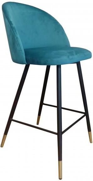 Hoker CLAUDINE VELVET GOLD morski to wyjątkowy hoker kuchenny tapicerowany miękką tkaniną aksamitną z kubełkowym oparciem na metalowych czarnych nogach, doskonały do nowoczesnych salonów, kuchni oraz barów.