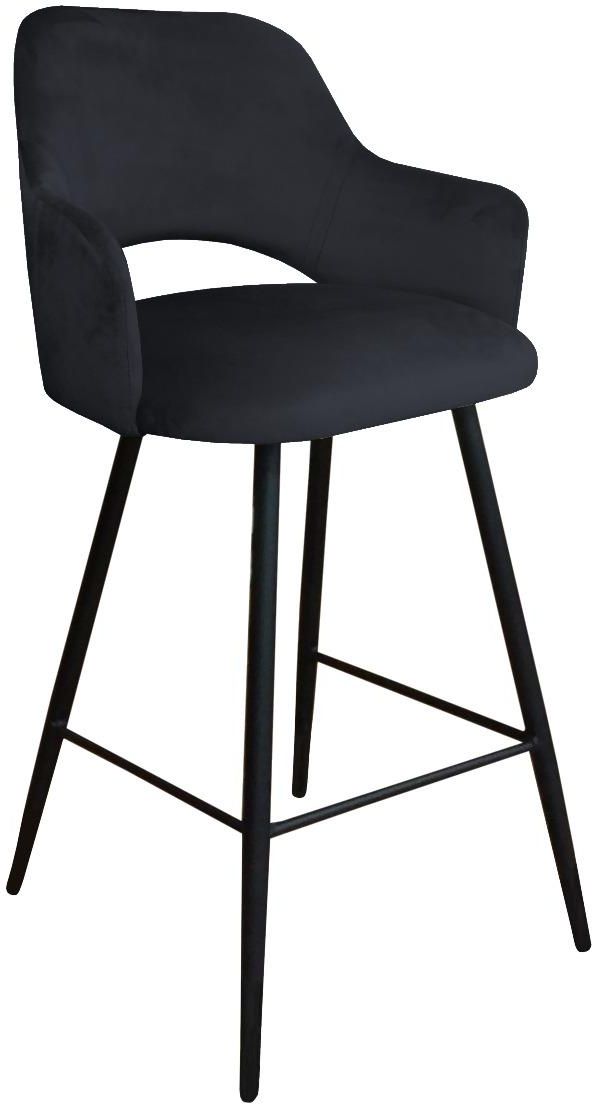 Hoker NAPO VELVET czarny to wyjątkowy hoker kuchenny tapicerowany miękką tkaniną aksamitną z kubełkowym oparciem na metalowych czarnych nogach.