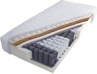ProducentFirma LuMitex to producent szerokiej gamy materacy z wieloletnim doświadczeniem zdobytym na rynku polskim i holenderskim. Producent LuMitex w procesie produkcyjnym wykorzystuje elementy dostarczane przez największych producentów w Polsce, a najwyższej jakości materiały gwarantują trwałość ich produktów jak i wysoki komfort użytkowania. Wszystkie surowce użyte do produkcji materacy posiadają atesty oraz zostały dobrane tak, aby w maksymalnym stopniu zlikwidować ryzyko powstawania uczuleń. Budowa materacaW materacu kieszeniowym każda sprężyna umieszczona jest w osobnej kieszonce, wykonanej z materiału. Taka budowa materaca powoduje niezależność pracy sprężyn. Dzięki temu materac dopasowuje się do naturalnego kształtu ciała. Gwarantuje to użytkownikowi wysoki komfort i wygodę użytkowania przez wiele lat. Im większa ilość sprężyn, tym większy komfort dla naszego kręgosłupa. Materac kieszeniowy jest również polecany dla par. Zmiana położenia ciała jednej osoby nie wpływa na pozycję ciała drugiej osoby. Zdrowy senCzy wciąż budzisz się niewsypany? Czy podczas wstawania towarzyszy Ci ból głowy? A może boli Cię kręgosłup lub wszystkie "kości"? Powodem tych dolegliwości może być nieodpowiedni materac. Sen stanowi 1/3 Twojego życia więc warto zainwestować pieniądze w odpowiednie podłoże, na którym w pełni wypoczniesz. Materac kieszeniowy SUPERNOVA 100x200 dwustronny materac kieszeniowy obłożony obustronnie płytami z pianki wysokoelastycznej o grubości 3 cm wkład materaca stanowią 7 strefowe hartowane sprężyny kieszeniowe obłożony obustronnie włókniną filcową 400gr oraz jednostronnie matą kokosową o grubości 1,5 cm (zastosowanie maty kokosowej zwiększa twardość materaca, oraz ułatwia jego wentylację) wygodny bardzo wytrzymały Pokrowiec hypoalergiczny pikowany dwustronnie ociepliną o wysokiej gramaturze zamek błyskawiczny ułatwia ściąganie pokrowca do prania pokrowiec można prać w temperaturze do 40 stopni C Cechy materaca dwustronny (obie strony produktu stanowią powierzchnię użytkową) średnia twardość 7 stref (materac został podzielony na 7 stref twardości, każda część ciała znajduje podparcie odpowiednie do swojego ciężaru) bez roztoczy hypoalergiczny (nie wywołujący alergii) owata (materiał o właściwościach termoizolacyjnych i wentylacyjnych) kokos (mata kokosowa jest surowcem naturalnym, wytwarzanym z łupiny orzecha kokosowego, przewiewna, większa trwałość) pianka