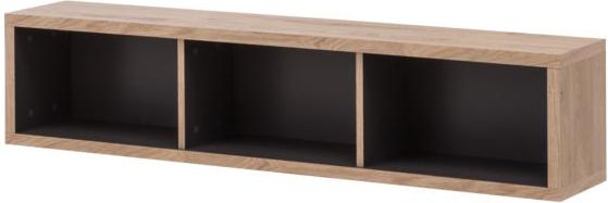 Półka z kolekcji Shetland, od producenta Meble Wójcik, oferuje użytkownikowi sporą przestrzeń do przechowywania książek i wyeksponowania wybranych dekoracji. Mebel posiada ścianki boczne i wewnętrzne, dzięki którym podtrzymuje takie przedmioty, jak pudełka z płytami, zapobiegając ich przewracaniu się. Jego atut stanowi również łatwość montażu i możliwość zawieszenia półki na dowolnej wysokości. Jak wykonano półkę ścienną Shetland? Półka do powieszenia Shetland została wykonana z wysokiej jakości laminowanej płyty, która charakteryzuje się wzmocnioną odpornością na uszkodzenia mechaniczne, działanie wilgoci czy wysoką temperaturę. Mebel ma też gładką, niewymagającą w pielęgnacji i łatwą w czyszczeniu powierzchnię, co przekłada się na wysoki komfort jego użytkowania. Półka dysponuje tylnym panelem zabezpieczającym ścianę, a także ściankami wewnętrznymi i bocznymi, które doskonale sprawdzają się przy eksponowaniu takich przedmiotów jak książki czy kolekcje płyt. Ścianki pozwalają również na dodatkowy podział tematyczny całej ekspozycji, dzięki czemu na półce można ustawić jednocześnie różne kolekcje, pamiątki i dekoracje. Gdzie sprawdzi się półka wisząca Shetland? Prezentowana półka na drobiazgi z kolekcji Shetland pasuje do wszystkich pozostałych mebli z tej linii za sprawą spójnego wybarwienia na dekor Dąb Shetland, zestawiony z kolorem szarym. Jej prosta budowa i minimalistyczna linia pozwalają uniknąć efektu przytłoczenia aranżacji, jednocześnie dodając jej ciepła i elegancji. Półkę można wykorzystać w każdym pomieszczeniu i na każdej ścianie, na przykład nad telewizorem, nad komodą czy nad biurkiem. Wymiary półki Szerokość: 136 cm Głębokość: 25 cm Wysokość: 30 cm