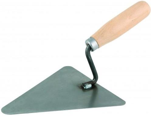 Kielnia murarska trójkątna przeznaczona do nakładania i rozprowadzania zapraw murarskich. Wykonana ze stali węglowej, uchwyt drewniany.