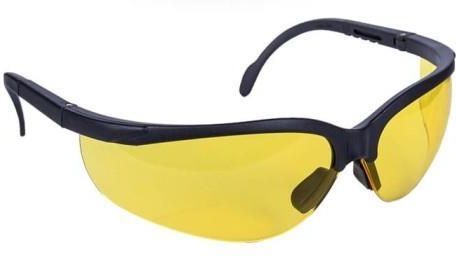 Przeciwodpryskowe okulary ochronne. klasa optyczna 1 filtr chroniący przed nadfioletem 2C-1.2 zapewniają ochronę przed małymi odpryskami ciał stałych o energii uderzeń do 45 m/s (F) szybki wykonane z poliwęglanu ramiona oraz ramka wykonane z czarnego nylonu okulary o żółtym zabarwieniu, poprawiają kontrast posiadają regulację w długości ramion spełniają wymagania normy EN166 oraz EN170