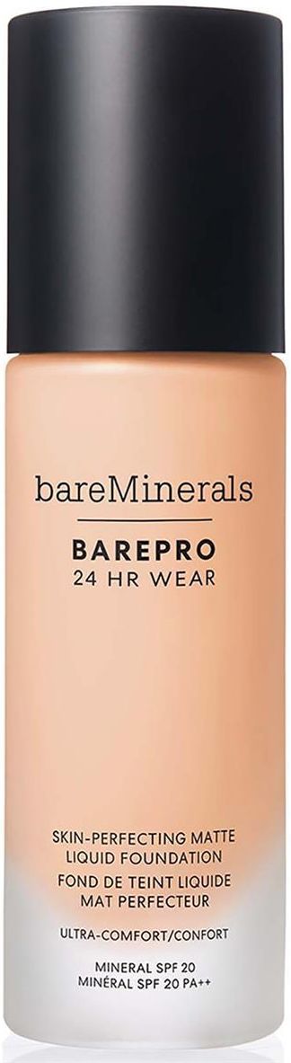 BarePro 24HR Wear Skin-Perfecting Matte Liquid Foundation to długotrwały podkład w płynie, który zapewnia pełne krycie oraz naturalne, matowe wykończenie. Dzięki lekkiej formule jest wyjątkowo komfortowy w noszeniu – jak druga skóra. Dostępny w wielu odcieniach, idealnie dopasowuje się do kolorytu cery dzięki inteligentnym pigmentom. Wzbogacony o minerały absorbujące sebum oraz składniki pielęgnujące, podkład pozwala skórze oddychać, jednocześnie redukując niedoskonałości i wyrównując koloryt. Ekstrakt z pereł z granatu z recyklingu i mineralne pudry rozjaśniają i wygładzają cerę bez efektu maski. Zawiera tlenek cynku, który chroni skórę przed szkodliwym działaniem promieni UVA/UVB, wolnych rodników i promieni podczerwonych. Ma szerokie spektrum ochrony SPF 20. Formuła jest wegańska i niekomedogenna – nie zapycha porów. Sposób użycia: Przekręć pompkę, aby ją odblokować. Nanieś odrobinę podkładu na grzbiet dłoni. Użyj pędzla, aby rozprowadzić produkt od środka twarzy na zewnątrz. W celu uzyskania mocniejszego krycia, dołóż produkt miejscowo, delikatnie go wklepując. WATER, DIMETHICONE, TRIMETHYLSILOXYSILICATE, CAPRYLYL METHICONE, BUTYLENE GLYCOL, ISOHEXADECANE, CAPRYLYL DIMETHICONE ETHOXY GLUCOSIDE, METHYL TRIMETHICONE, ISODODECANE, SORBITAN ISOSTEARATE, DIMETHICONE/VINYL DIMETHICONE CROSSPOLYMER, BIS-HYDROXYETHOXYPROPYL DIMETHICONE/IPDI COPOLYMER ETHYLCARBAMATE, BORON NITRIDE, PUNICA GRANATUM PERICARP EXTRACT, GLYCERIN, POLYSILICONE-11, PHENOXYETHANOL, SODIUM CHLORIDE, CELLULOSE, POLYPHENYLSILSESQUIOXANE, SILICA, TRIETHOXYCAPRYLYLSILANE, ALCOHOL, DI-C12-13 ALKYL TARTRATE, DISTEARDIMONIUM HECTORITE, POTASSIUM SORBATE, SODIUM DEHYDROACETATE, CAPRYLIC/CAPRIC TRIGLYCERIDE, TOCOPHERYL ACETATE, ALUMINA, LAURYL DIMETHICONE, C20-24 OLEFIN. MAY CONTAIN: IRON OXIDES (CI 77491, CI 77492, CI 77499), TITANIUM DIOXIDE (CI 77891). Brązujący: nie Działanie: matujące, wygładzające Forma podania: pompka Gramatura: ml Kolor: Fair 12 Cool Pojemność: 30 Płeć: damski Rodzaj skóry: bardzo sucha, mieszana/tłusta, normalna Rozświetlający: nie SPF: 20 Stopień krycia: lekkie, mocnokryjące, średnie Słońce: tak Trwałość: o przedłużonej trwałości Typy: wrażliwa Nie są wymagane żadne specjalne środki ostrożności przy używaniu tego produktu w normalnych lub racjonalnie przewidywalnych warunkach użytkowania.
