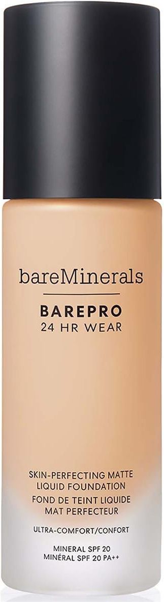 BarePro 24HR Wear Skin-Perfecting Matte Liquid Foundation to długotrwały podkład w płynie, który zapewnia pełne krycie oraz naturalne, matowe wykończenie. Dzięki lekkiej formule jest wyjątkowo komfortowy w noszeniu – jak druga skóra. Dostępny w wielu odcieniach, idealnie dopasowuje się do kolorytu cery dzięki inteligentnym pigmentom. Wzbogacony o minerały absorbujące sebum oraz składniki pielęgnujące, podkład pozwala skórze oddychać, jednocześnie redukując niedoskonałości i wyrównując koloryt. Ekstrakt z pereł z granatu z recyklingu i mineralne pudry rozjaśniają i wygładzają cerę bez efektu maski. Zawiera tlenek cynku, który chroni skórę przed szkodliwym działaniem promieni UVA/UVB, wolnych rodników i promieni podczerwonych. Ma szerokie spektrum ochrony SPF 20. Formuła jest wegańska i niekomedogenna – nie zapycha porów. Sposób użycia: Przekręć pompkę, aby ją odblokować. Nanieś odrobinę podkładu na grzbiet dłoni. Użyj pędzla, aby rozprowadzić produkt od środka twarzy na zewnątrz. W celu uzyskania mocniejszego krycia, dołóż produkt miejscowo, delikatnie go wklepując. WATER, DIMETHICONE, TRIMETHYLSILOXYSILICATE, CAPRYLYL METHICONE, BUTYLENE GLYCOL, ISOHEXADECANE, CAPRYLYL DIMETHICONE ETHOXY GLUCOSIDE, METHYL TRIMETHICONE, ISODODECANE, SORBITAN ISOSTEARATE, DIMETHICONE/VINYL DIMETHICONE CROSSPOLYMER, BIS-HYDROXYETHOXYPROPYL DIMETHICONE/IPDI COPOLYMER ETHYLCARBAMATE, BORON NITRIDE, PUNICA GRANATUM PERICARP EXTRACT, GLYCERIN, POLYSILICONE-11, PHENOXYETHANOL, SODIUM CHLORIDE, CELLULOSE, POLYPHENYLSILSESQUIOXANE, SILICA, TRIETHOXYCAPRYLYLSILANE, ALCOHOL, DI-C12-13 ALKYL TARTRATE, DISTEARDIMONIUM HECTORITE, POTASSIUM SORBATE, SODIUM DEHYDROACETATE, CAPRYLIC/CAPRIC TRIGLYCERIDE, TOCOPHERYL ACETATE, ALUMINA, LAURYL DIMETHICONE, C20-24 OLEFIN. MAY CONTAIN: IRON OXIDES (CI 77491, CI 77492, CI 77499), TITANIUM DIOXIDE (CI 77891). Brązujący: nie Działanie: matujące, wygładzające Forma podania: pompka Gramatura: ml Kolor: Light 21 Neutral Pojemność: 30 Płeć: damski Rodzaj skóry: bardzo sucha, mieszana/tłusta, normalna Rozświetlający: nie SPF: 20 Stopień krycia: lekkie, mocnokryjące, średnie Słońce: tak Trwałość: o przedłużonej trwałości Typy: wrażliwa Nie są wymagane żadne specjalne środki ostrożności przy używaniu tego produktu w normalnych lub racjonalnie przewidywalnych warunkach użytkowania.