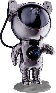 Projektor gwiazd HAWK HW-STAR02 Astronauta z zegarkiem to nowoczesne urządzenie łączące funkcjonalność z wyjątkowym designem. Jego chromowane wykończenie sprawia, że pełni nie tylko rolę projektora, ale także futurystycznej ozdoby wnętrza.
