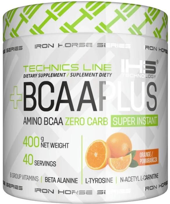 IRON HORSE BCAA Plus BCAA plus to świetny produkt dla sportowców oraz amatorów. Zawiera w swym składzie aminokwasy rozgałęzione (leucyna, izoleucyna oraz walina) w stosunku 1,3 : 0,9 : 0,8, dokładnie takim samym jak w naszych mięśniach. Dzięki temu mają silne działanie regenerujące i ochraniające mięśnie podczas długotrwałych, intensywnych treningów. BCAA Plus zostały wzbogacone o wiele dodatkowych składników, które wspólnie tworzą najbardziej zaawansowaną formułę BCAA na rynku, która zaspokoi oczekiwania sportowców wyczynowych jak i amatorów. Biorąc BCAA Plus masz pewność, że przyjmujesz solidną dawkę atykataboliczną oraz regenerującą. Twoje mięśnie otrzymują wszystkie składniki niezbędne w procesie wytwarzania energii, dzięki czemu możesz trenować dłużej i z większą intensywnością. DLA KOGO? Suplement dedykowany jest dla: wyczynowych sportowców osób uprawiających sport amatorsko budujących masę mięśniową podczas redukcji masy ciała, aby zmniejszyć katabolizm mięśniowy podczas długotrwałych wysiłków fizycznych i psychicznych, BCAA, ALC, Tyrozyna hamują zmęczenie układu nerwowego w celu zwiększenia wytrzymałości ZALETY SILNY ANTYKATABOLIK PRZYŚPIESZA REGENERACJĘ MIĘŚNI 40 PORCJI W OPAKOWANIU 10 RÓŻNYCH SKŁADNIKÓW WSPOMAGA UKŁAD NERWOWY (ALC, TYROZYNA) DODATEK BETA-ALANINY ZWIĘKSZA WYDOLNOŚĆ ORGANIZMU BEZ DODATKU CUKRU Tabela wartości Zawartość: 400 g Liczba porcji w opakowaniu: 40 1 porcja: 10 g (2 miarki) Substancje czynne Wartość w 1 porcji 2 kapsułki RWS* w % L-leucyna 2600 mg - L-walina 1800 mg - L-izoleucyna 1600 mg - Beta-alanina 1400 mg - L-tyrozyna 350 mg - N-acetylo-L-karnityna 150 mg - L-histydyna 100 mg - Magnez 100 mg 26,66% Tiamina 5 mg 454,5% Pirydoksyna 5 mg 357,1% Kobalamina 10µg 200% *RWS Referencyjne wartości spożycia podane w % SKŁAD: L-leucyna, L-walina, L-izoleucyna, beta-alanina, L-tyrozyna, N-acetyl L-karnityny, cytrynian magnezu, chlorowodorek tiaminy, chlorowodorek pirydoksyny, cyjanokobalamina; substancje słodzące: sacharynian sodu, sukraloza; aromat owocowy: cytrynowy – dla smaku cytrynowego, ananasowy – dla smaku ananasowego, owoców lasu – dla smaku owoców lasu, pomarańczowy – dla smaku pomarańczowego, kiwi – dla smaku kiwi, arbuzowy – dla smaku arbuzowego, jeżynowy – dla smaku jeżynowego; substancje barwiące: ryboflawina – dla smaku cytrynowego i ananasowego, ekstrakt z buraka czerwonego – dla smaku owoców lasu, arbuzowego i jeżynowego, żółcień pomarańczowa – dla smaku pomarańczowego, zieleń pistacjowa – dla smaku kiwi; substancja przeciwzbrylająca: dwutlenek krzemu. STOSOWANIE: 1 porcję 10g (2 miarki) rozpuścić w szklance wody i wypić bezpośrednio przed treningiem. Dobrym rozwiązaniem będzie również picie 1 porcji w trakcie treningu małymi łykami. DATA WAŻNOŚCI: Minimum 1 rok, chyba że podano inaczej.