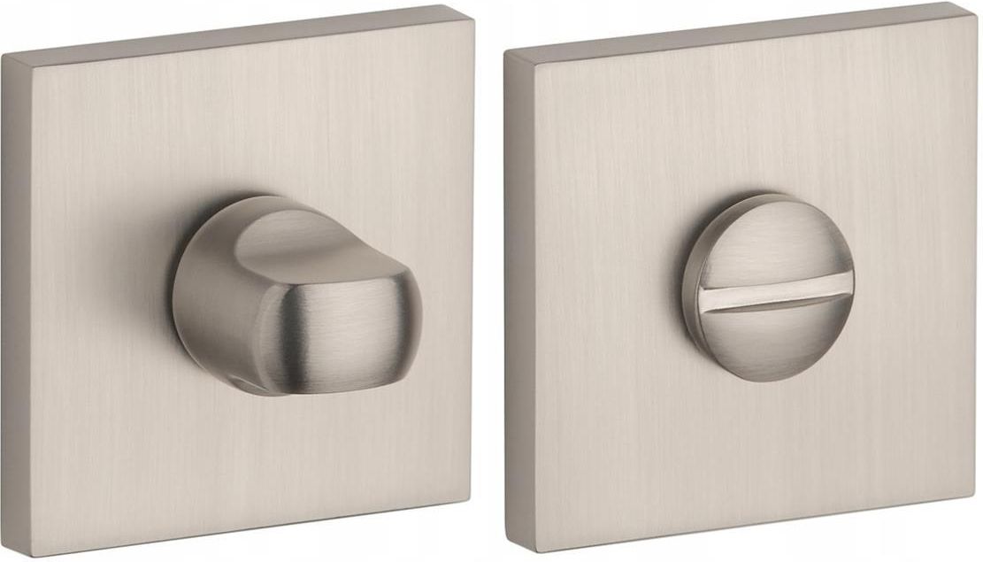 ROZETA WEWNĘTRZNA KWADRATOWA kolor: nikiel kształt rozety: kwadratowa wymiar rozety: 52mm x 52mm wersja: blokada łazienkowa kod produktu: AT Q 7S MSN WC 4X4 Rozety dedykowane są do drzwi o maksymalnej grubości 44 mm. Klamki Aprile to nowa propozycja estetyki, która językiem współczesnego wzornictwa wyraża powrót do harmonijnych kompozycji oraz klasycznych proporcji. Produkty te powstają z myślą o klientach poszukujących oryginalnych lecz zrównoważonych form, dalekich od zmanieryzowanego designu i chwilowych trendów. Wyposażone są w podwójne, metalowe sprężyny samopoziomujące, montowane do skrzydła drzwiowego na metalowych adapterach. Gwarantuje to komfortowe użytkowanie każdego egzemplarza klamki z logo Aprile. Rozety dodatkowe do klamek marki APRILE cechują się precyzyjnym wykonaniem i wyjątkową trwałością. Zawdzięczają ją osadzeniu na metalowych wypustach adapterów drzwiowych, które pozwala na komfortowe użytkowanie przez długi czas. Maskownica rozety mocowana jest na wcisk, dzięki czemu prezentuje się na skrzydle drzwiowym wyjątkowo estetycznie. KOMPLET ZAWIERA: 2 szt. maskownic o grubości 7mm; 2 szt. rozet montażowych (tzw. adapterów montażowych); 2 szt. śrub przelotowych M4; zestaw śrub imbusowych wraz z kluczem; pokrętło WC z trzpieniem o przekroju 4x4 mm zestaw drewnowkrętów.