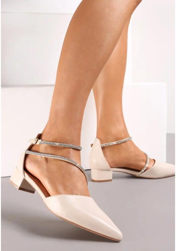 BEŻOWE PŁASKIE CZÓŁENKA Z CYRKONIAMI I NOSKIEM W SZPIC ROZMIAR 38 Dobrzyń nad Wisłą