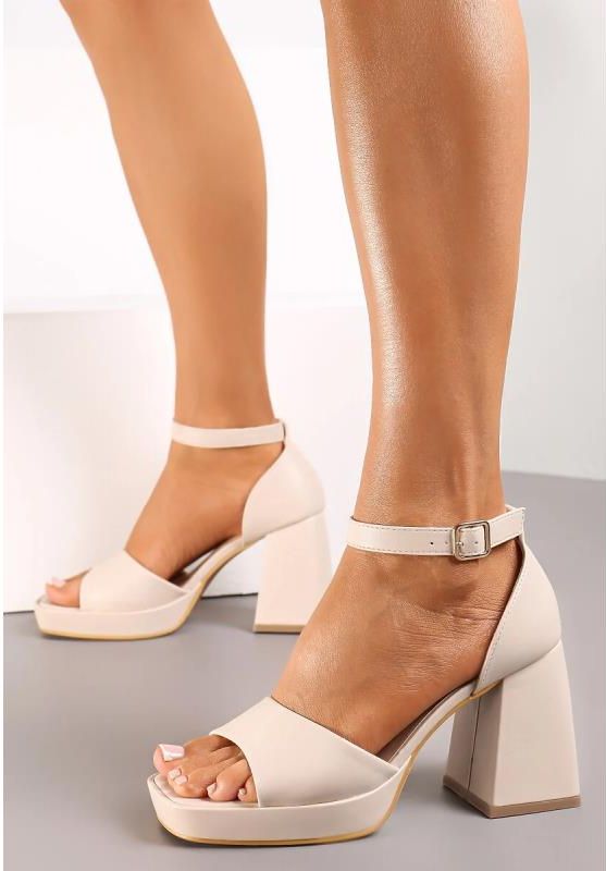 BEŻOWE SANDAŁY NA GEOMETRYCZNYM SŁUPKU ROZMIAR 37 CELDAIAL Dobrzyń nad Wisłą