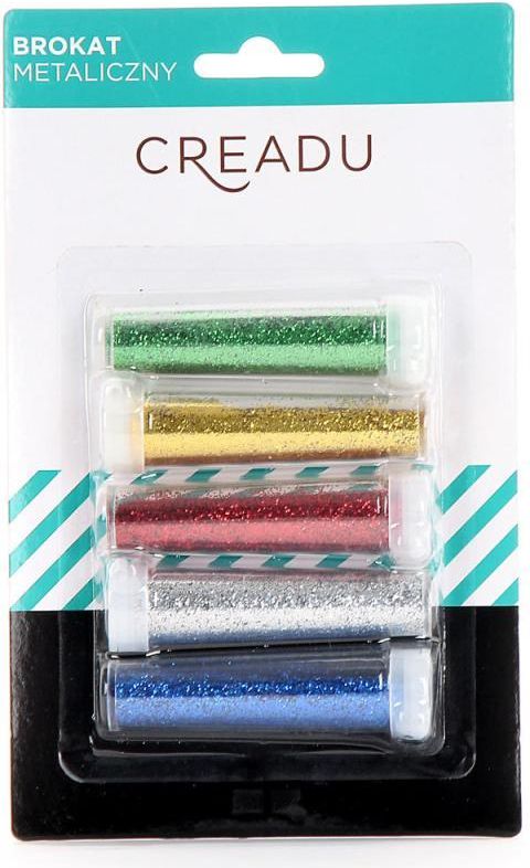 - zestaw brokatów - opakowanie zawiera 5 kolorów - każdy kolor o pojemności 7 g - pakowane na blistrze