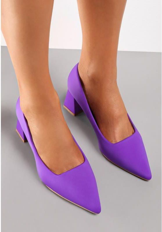 Czółenka Ritual na geometrycznym, powlekanym obcasie typu słupek. Ze szpiczastym noskiem. Wykonane z materiału o gładkiej fakturze, wkładka z ekoskóry. Wsuwane. Pasują najlepiej na wąską stopę. Klasyczne czółenka to must have dla fanek minimalistycznej lub kapsułowej garderoby. Kolor: Fioletowy …