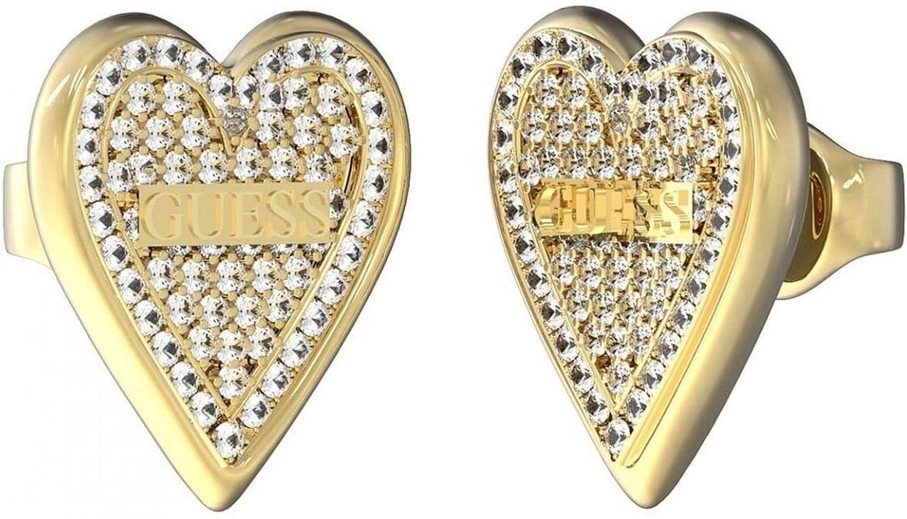Damskie kolczyki GUESS JUBE03251JWYG Biżuteria - Parametry: Materiał - STAL NIERDZEWNA, KRYSZTAŁKI Kolor - ŻÓŁTO ZŁOTY Bigiel - SZTYFT Wykończenie - ZAWIESZKI w kształcie serc. Biżuteria - Wymiary: Wysokość kolczyka - 18mm Szerokość kolczyka - 15mm Przy zakupie otrzymujesz: Oryginalną biżuterię …