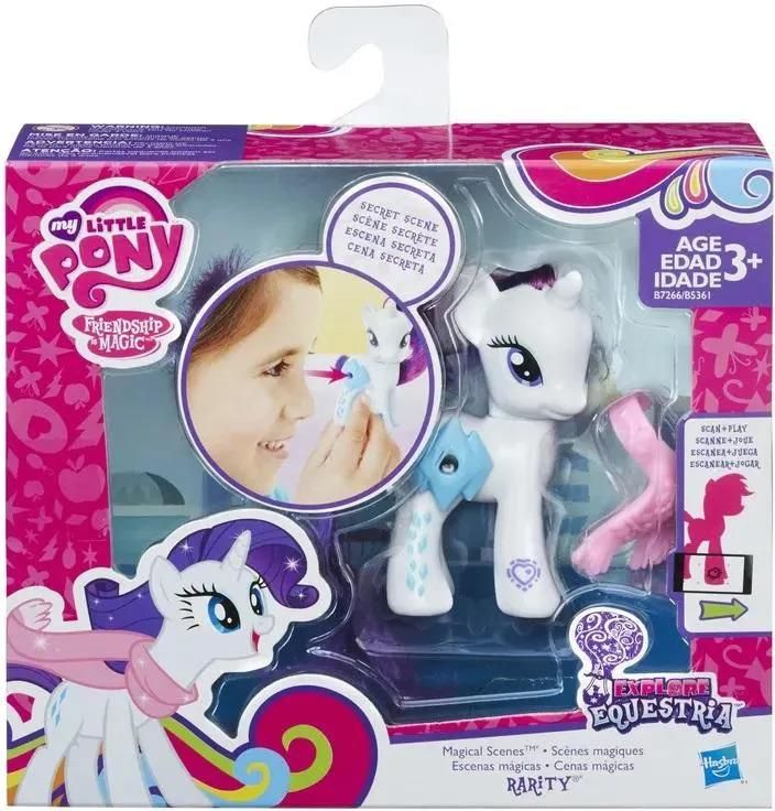 Figurki kucyków kryją w sobie niezwykłe scenki. Zajrzyj do wnętrza każdego z nich i przeżyj niezapomnianą przygodę. Każdy kucyk z serii ma ze sobą piękny dodatek. Możesz tez zeskanować kod swojego kucyka i bawić się w aplikacji My Little Pony Friendship Celebration.