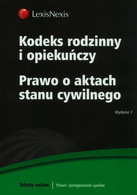 Publikacja zawiera tekst ustawy – Kodeks rodzinny i opiekuńczy wraz z przepisami wprowadzającymi oraz tekst ustawy – Prawo o aktach stanu cywilnego. Artykuły ustaw zostały opatrzone tytułami objaśniającymi ich sens – zaznaczono je kolorowym tłem. Książka zawiera skorowidze przedmiotowe do ustaw, ułatwiające odnalezienie poszczególnych instytucji i zagadnień. Publikacja ta jest skierowana przede wszystkim do studentów, aplikantów oraz osób przygotowujących się do wszelkiego rodzaju egzaminów prawniczych. Stan prawny: wrzesień 2013 roku.Ciężar: 0.11 Format: 12.5x17.5cm ISBN: 9788327801616 Języki: polski Kod wydawcy: 30309 Miejscowość: Warszawa Oprawa: Miękka PKWiU: 58.11.19.0 Rok wydania: 2013 Seria cyklu: TEKSTY USTAW Wydawca: LexisNexis Wysokość: 6