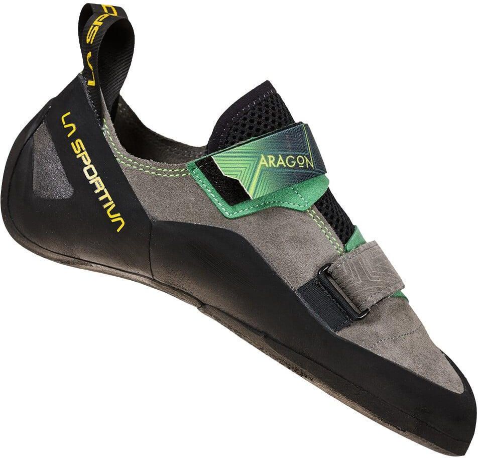 Buty wspinaczkowe La Sportiva Aragon - jasmine green/clay są świetną propozycją dla początkujących wspinaczy, którzy cenią sobie wygodę użytkowanego w ścianie obuwia. Dzięki nim bez trudu osiągniesz swoje wspinaczkowe cele i znacząco podniesiesz swoje umiejętności. Buty wspinaczkowe La Sportiva Aragon - jasmine green/clay wykonano z wysokiej jakości skóy zamszowej. Całość zapinana jest za pomocą rzepów, co znacząco podnosi komfort zakładania obuwia. Mała asymetria przyczynia się do wygody noszenia przez długie godziny spędzone na panelu. Podeszwa FriXion® Black o grubości 4 mm doskonale sprawdzi się wśród osób, które swoją przygodę dopiero rozpoczynają. Zapewnia optymalne wsparcie, przy jednoczesnym czuciu stopni. Dwie tyle pętelki pozwalają na szybkie zakładanie i zdejmowanie obuwia. Całość stworzono z myślą o początkujących wpinaczach, poszukujących komfortowego modelu na sztuczne obiekty wspinaczkowe. Buty La Sportiva Aragon - jasmine green/clay – najważniejsze cechy:Buty wspinaczkowe przeznaczone dla osób początkujących;Cholewka wykonana z naturalnej skóry zamszowej - odpowiednio trwała i łatwo dopasowująca się do kształtu stopy;Zapięcie dwoma rzepami Velcro®;Śródpodeszwa Laspo Flex 1.1 mm wspiera stopę, zachowując jednocześnie optymalną elastyczność i czucie;Podeszwa FriXion® Black 4 mm;Dwie pętelki ułatwiające zakładanie;Doskonale sprawdzą się na sztucznych obiektach wspinaczkowych.