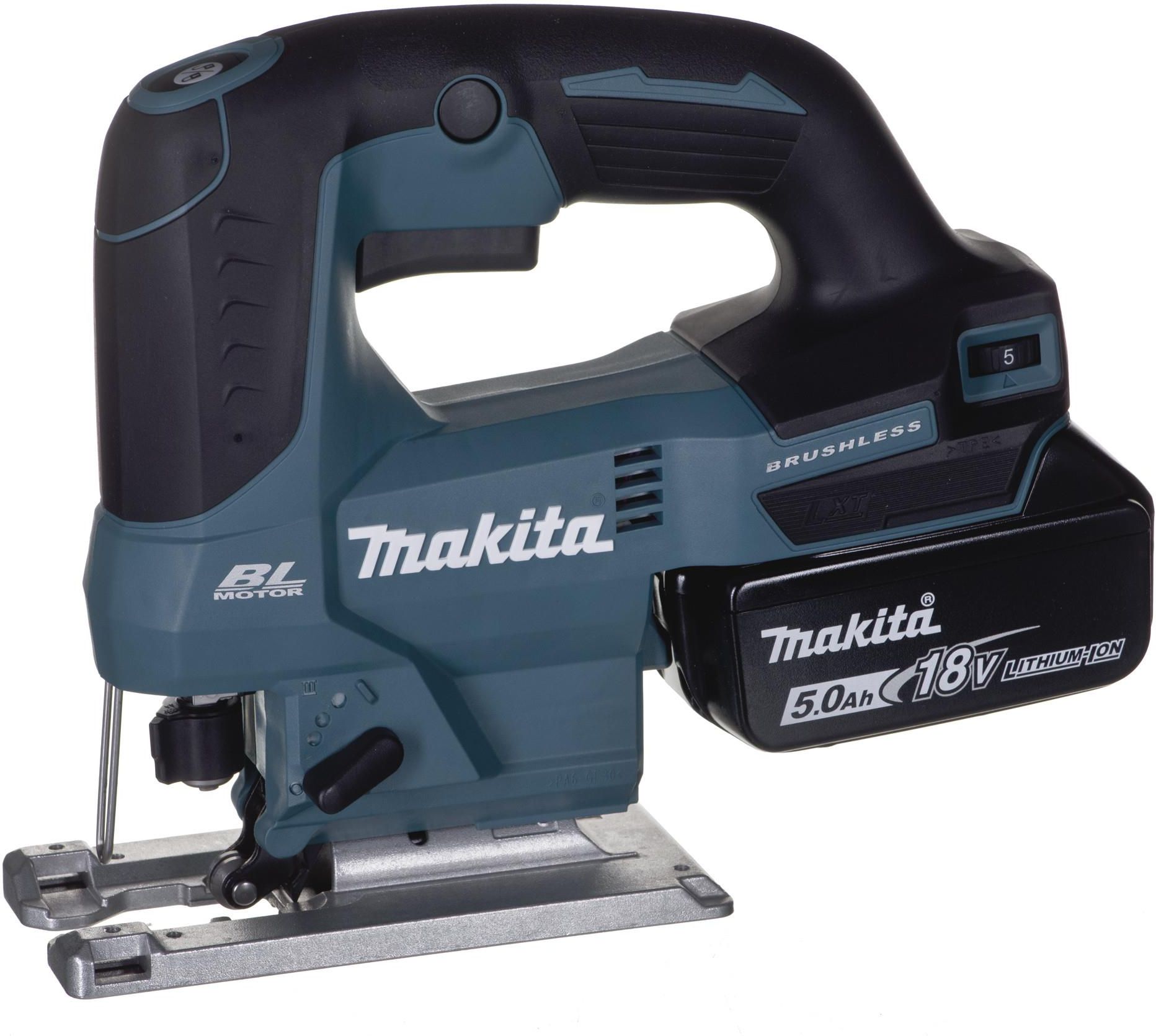 Bezszczotkowa wyrzynarka 18V LXT typ B 5-biegów 2x5Ah Makita DJV184RTJ Zawartość zestawu Akumulatorowa wyrzynarka 18V LXT 5-biegów Makita DJV184 2 x akumulator Li-Ion LXT 18V 5Ah Makita Ładowarka li-Ion wielonapięciowa Makita Nakładka z tworzywa sztucznego na stopę Klucz serwisowy Walizka …