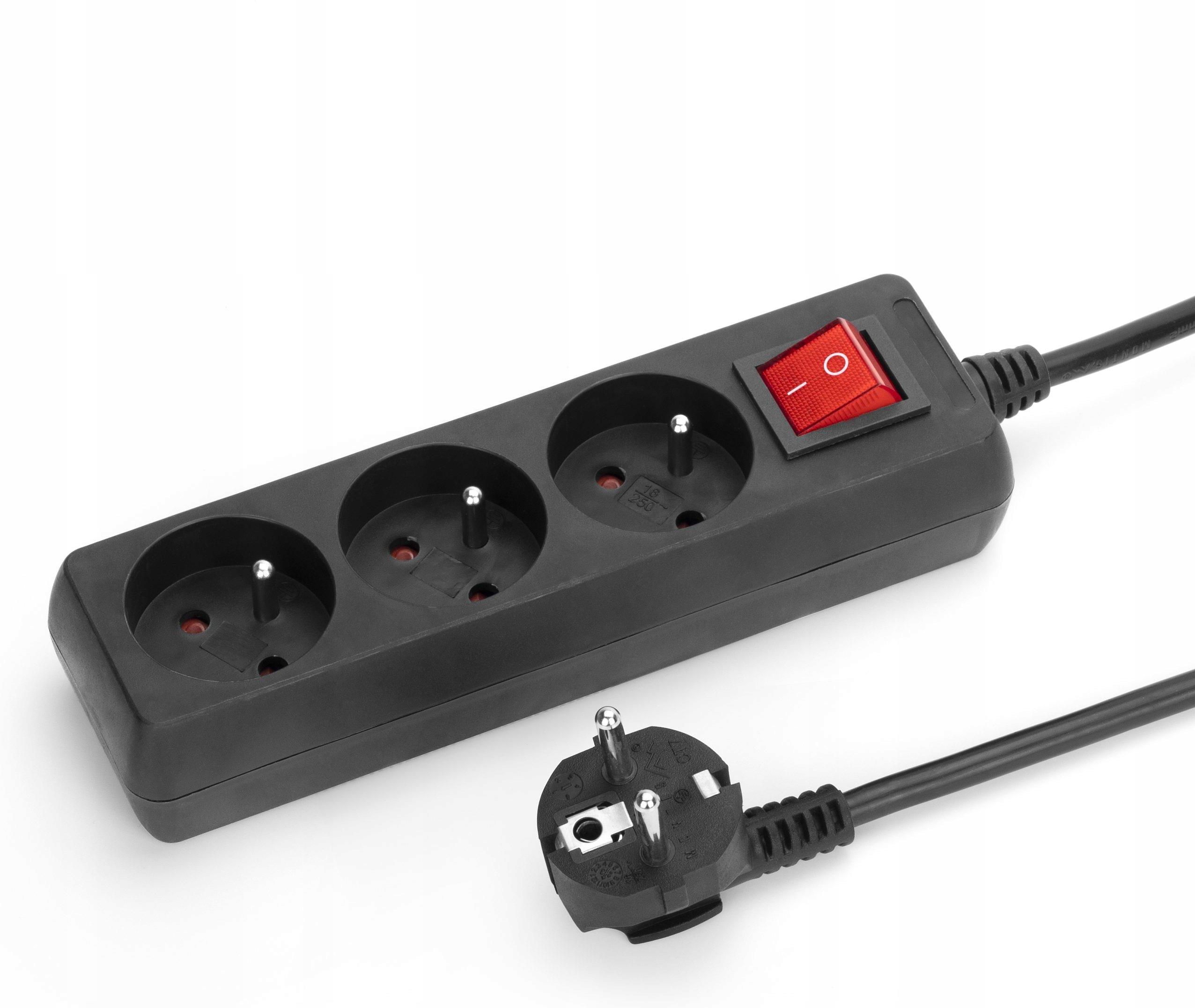 Przedłużacz sieciowy 3 gniazda 5m z przełącznikiem czarny MT118B-5 MONTIS Wszechstronne rozwiązanie zasilające: przedłużacz sieciowy 3-gniazdowy Nasz przedłużacz sieciowy z trzema gniazdami to niezbędny element wyposażenia każdego domu i biura. Charakteryzując się czarnym kolorem i minimalistycznym designem, idealnie komponuje się z różnymi wnętrzami. Dzięki kompaktowym wymiarom i długości kabla 5m, pozwala na elastyczne umiejscowienie i zapewnia łatwy dostęp do zasilania tam, gdzie jest to najbardziej potrzebne. Podświetlany wyłącznik nie tylko ułatwia obsługę w ciemności, ale także dodaje urządzeniu nowoczesnego wyglądu. Bezpieczeństwo i trwałość: gwarancja niezawodności Produkt został wykonany z wysokiej jakości tworzywa sztucznego, co zapewnia jego trwałość i odporność na uszkodzenia. Dzięki uziemieniu oraz klasie ochronności IP20, użytkownicy mogą być pewni bezpieczeństwa podczas korzystania z przedłużacza. Maksymalny prąd wynoszący 16A gwarantuje niezawodność i stabilność zasilania dla podłączonych urządzeń. Oferowany przedłużacz to wybór, który służy bezpieczeństwu i wygodzie użytkowników. Funkcjonalność na pierwszym miejscu Zastosowanie przedłużacza sieciowego z trzema gniazdami znacznie rozszerza możliwości podłączenia różnych urządzeń elektrycznych. Przekrój żyły 3 x 1mm zapewnia optymalną przewodność i efektywność energetyczną. Podświetlany wyłącznik umożliwia łatwą kontrolę nad pracą urządzeń, co jest szczególnie przydatne w nocy lub w słabo oświetlonych pomieszczeniach. Przedłużacz jest idealnym rozwiązaniem dla osób, które cenią sobie organizację i chcą uniknąć plątaniny kabli. Estetyka i funkcjonalność w jednym Czarny kolor obudowy sprawia, że przedłużacz jest nie tylko praktycznym, ale i estetycznym dodatkiem do każdego wnętrza. Elegancki wygląd urządzenia połączony z funkcjonalnością czyni go idealnym rozwiązaniem dla osób poszukujących nieinwazyjnych i stylowych opcji zasilania. Solidna konstrukcja zapewnia użytkownikom długotrwałe i bezproblemowe użytkowanie. Specyfikacja Ilość gniazd: 3 Długość kabla: 5m Przekrój żyły: 3 x 1mm² Prąd znamionowy: 16A Napięcie znamionowe: 230V Maksymalne obciążenie: 3680W Klasa ochronności: IP20 Uziemienie: TAK Obudowa: tworzywo sztuczne Wyłącznik: TAK; podświetlany