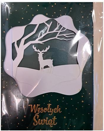 Kartka świąteczna "Wesołych Świąt z kopertą" to piękny, klasyczny świąteczny design, który roztacza atmosferę radości i ciepła. Na przedniej stronie kartki znajduje się uroczy ilustracyjny motyw związany z Bożym Narodzeniem, jak choinka, śnieg lub renifer. Całość jest w pełni kolorowa i przyciągająca wzrok. Wewnątrz kartki znajduje się obszar, w którym można spersonalizować życzenia. To miejsce, gdzie możesz wyrazić swoje najlepsze życzenia i podziękowania, dodając swoje własne słowa. Kartka jest również wyposażona w kopertę, co sprawia, że ​​jest gotowa do wysłania bliskim i znajomym, aby podzielić się świąteczną radością i miłością. To idealny sposób, aby przekazać swoje życzenia i zrobić bliskim radosne święta.