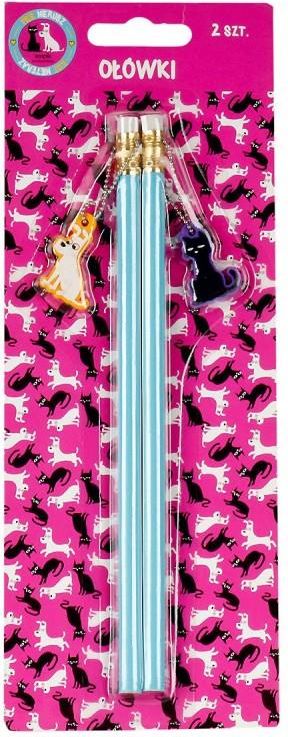 - ołówki z limitowanej kolekcji Pies Nierusz i Kot Nieteraz - posiadają gumkę do ścierania - jeden ozdobiony przywieszką z wizerunkiem psa, drugi z wizerunkiem kota - ilość w opakowaniu: 2 szt.