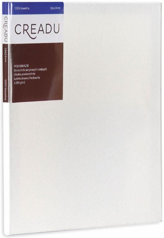 Podobrazie bawełniane, 18x24 cm - podobrazie malarskie - przeznaczone do technik malarskich i olejowych - gładka powierzchnia - lekkie drewno Paulownia - gramatura: 280 g/m2 - wymiary: 18 cm, 24 cm