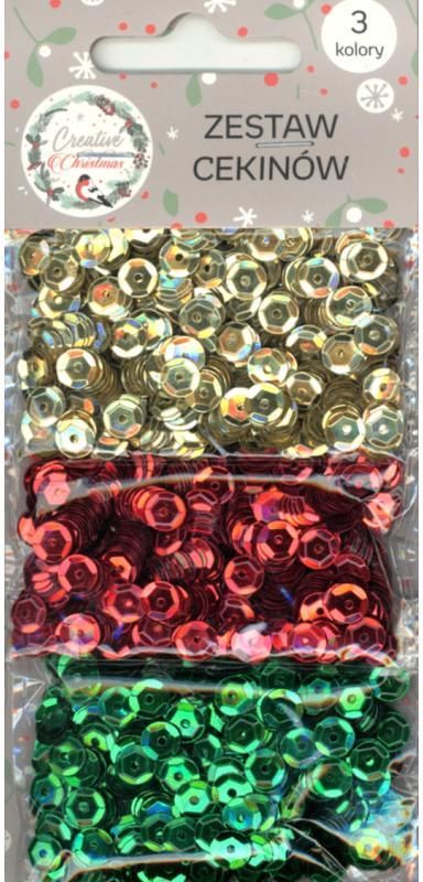 Cekiny okrągłe. Cekiny doskonale nadają się do wszelkiego rodzaju aktywności twórczej, jak również do zdobienia prac kreatywnych. Zestaw 3 kolorów po 5 g. Kolory metaliczne. Średnica cekinów: 8 mm.