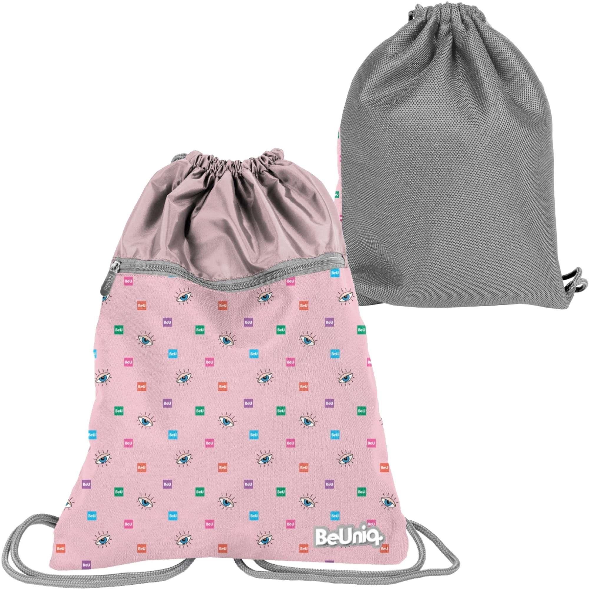 Worek gimnastyczny jest w kolorystyce szaro-różowej i posiada obrazki oczek. Został wykonany z najwyższej jakości materiałów.