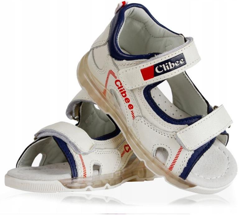 - rozmiar - 25 - firma - CLIBEE - fason - sandały - kolor - biały - tworzywo - skóra naturalna - zapinanie - rzepy - wkładka - ze skóry naturalnej, całe wnętrze bucika również - informacje dodatkowe - lekkie, piętka usztywniana, wkładka profilowana, światełka LED w podeszwie