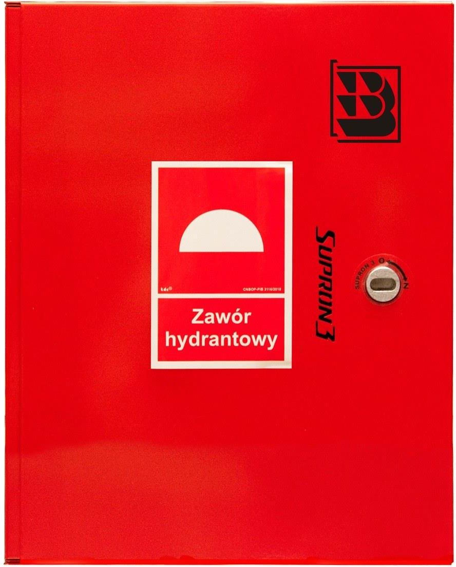 Zawór hydrantowy typ ZH-52 (2 sztuki) wraz z obudową, szafka ochronna 520 z Producent: SUPRON3 Zawór hydrantowy typ ZH-52 (2 sztuki) wraz z obudową, szafka ochronna 520 zawieszana, znak B, zamek OTS, kolor czerwony RAL3000 Szafki na zawór służą do zabudowania zaworów hydrantowych pożarowych ZH-52, …