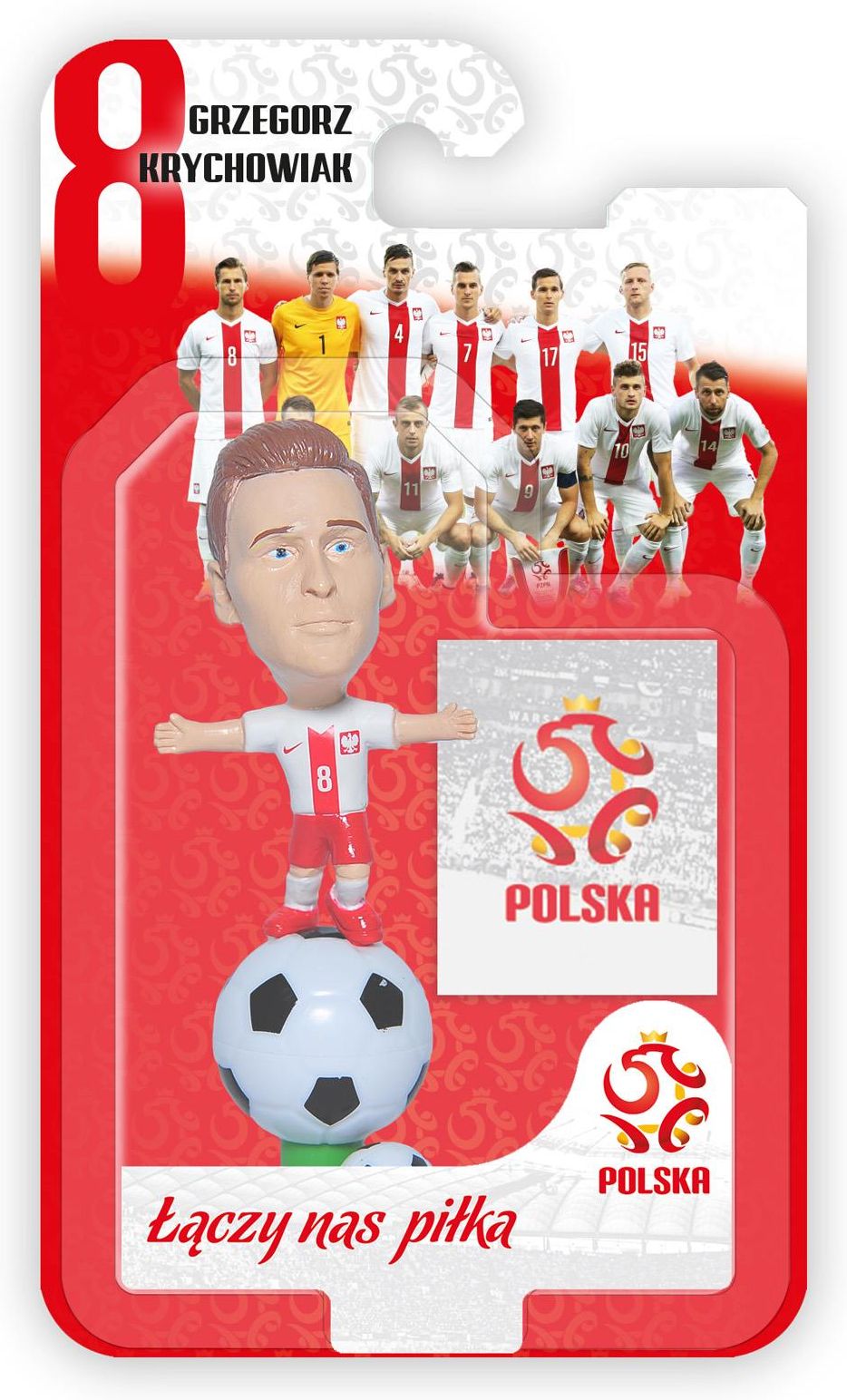 W ofercie do wyboru 8 figurek zawodników: Robert Lewandowski, Wojciech Szczęsny, Sebastian Mila, Jakub Błaszczykowski, Łukasz Fabiański, Łukasz Piszczek, Arkadiusz Milik, Grzegorz Krychowiak. Zestaw zawiera: figurkę piłkarza, piłkę, przewodnik kolekcjonerski. Każda figurka posiada magnes, dzięki …