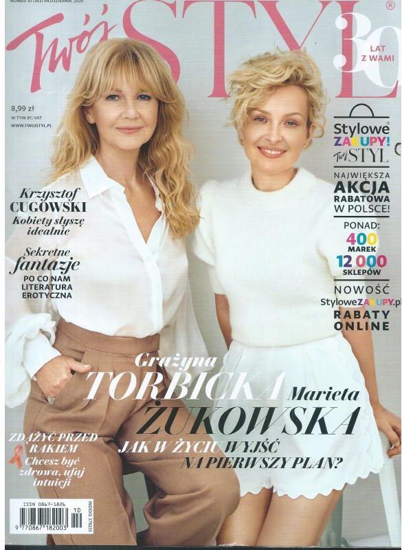 Czasopismo: Twój Styl; październik 2020. 30 lat z wami; Krzysztof Cugowski: kobiety słyszę idealnie; Sekretne fantazje: po co nam literatura erotyczna; Grażyna Torbicka, Marieta Żukowska - jak w życiu wyjść na pierwszy plan; Zdążyć przed rakiem - chcesz być zdrowa ufaj intuicji.