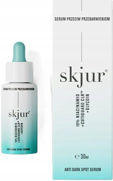 OpisSKJUR SERUM PRZECIW PRZEBARWIENIOM to kosmetyk, przeznaczony dla osób dorosłych, dedykowany dla kobiet po 35 roku życia, który wspomaga redukcję plam pigmentacyjnych, zwęża pory i zapewnia równomierny koloryt cery. Składniki/IngredientsAqua, Niacinamide, Pentylene Glycol, Betaine, Sucrose, …