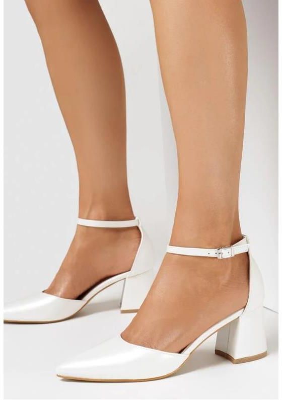 Czółenka Phaedraea z zakrytym, szpiczastym noskiem. Osadzone na szerokim, powlekanym słupku. Wykonane z ekoskóry, łącznie z wkładką. Gładkie. Zapinane na sprzączkę przy kostce, pięta zakryta, boki wycięte. Idealnie uzupełnią koktajlową stylizację z sukienką lub spódnicą. Kolor: Biały Rozmiarówka: Typowa Tęgość stopy: Neutralny Rodzaj obcasa: Słupek Wkładka/wyściółka: Ekoskóra Materiał: Ekoskóra Nosek buta: Szpiczasty Zapięcie: Sprzączka Sezon: Letni Wysokość obcasa: 6.5 cm