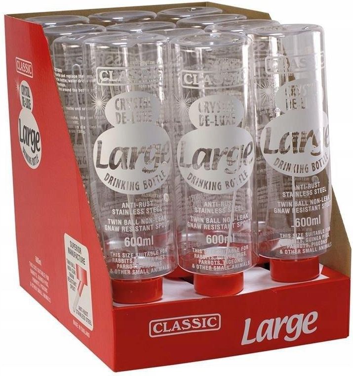 Classic | Poidełko do klatki dla królika 12 x 600ml Solidnie wykonane poidełko kulkowe dla gryzoni i królików. Poidełko jest niezbędnym elementem dla każdego małego zwierzątka. Zapewnia dostęp do świeżej, czystej wody. Produkt jest łatwy w montażu i pasuje do każdego typu klatki. Poidełko wykonane …