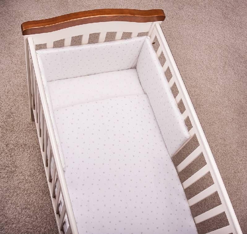 Pościel do łóżeczka dla niemowląt w drobne gwiazdki to wysokiej jakości pościel z tkaniny bawełnianej, bardzo miękkiej i przyjemnej w dotyku. Komplet pościeli niemowlęcej składa się z poszewki na poduszkę 40x60 cm, poszwy na kołderkę 135x100cm i ochraniacza. Dwustronna pościel dla dziewczynki zachęci małą księżniczkę do spania i dopełni wnętrza dziecięcego pokoiku. Pościel do łóżeczka niemowlaka wyposażona jest w bezpieczne zamki, dzięki czemu maluch sam jej nie rozepnie. Pościel 3 elementowa dla niemowląt zawiera wszystkie elementy dwustronne, dzięki czemu możesz zmieniać kolorystykę pościeli tworząc nowe kompozycje. Komplety pościeli do łóżeczka niemowlęcego w naszym sklepie dzieciakzakupy.pl to produkty najwyższej jakości spełniające wymagania rodziców i ich małych pociech. Komplet pościeli 3 elementowej do łóżeczka niemowlęcego: - poszewka na poduszkę 40x 60 cm, - poszwa na kołderkę 135x 100 cm, - ochraniacz dwustronny 180cm. Skład: poszewki: bawełna 100 %, ochraniacz: poszycie - 100% bawełna, wypełnienie - poliester 100%. 0