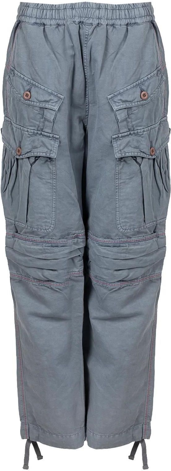 Spodnie typu bojówki to idealne rozwiązanie dla osób ceniących sobie styl i funkcjonalność, łącząc w sobie wygodę i nowoczesny wygląd, co sprawia, że są doskonałym wyborem na każdą okazję. Z gumą w pasie, te bojówki zapewniają wyjątkowy komfort noszenia, jednocześnie doskonale dopasowując się do sylwetki, co czyni je nie tylko praktycznym, ale i stylowym elementem garderoby. Dodatkowo, możliwa regulacja pasa za pomocą sznurków pozwala na jeszcze lepsze dopasowanie, co sprawia, że możesz czuć się swobodnie i pewnie, niezależnie od sytuacji. Z przodu dwie wpuszczone kieszenie i cztery naszyte oferują mnóstwo miejsca na przechowywanie niezbędnych drobiazgów, co jest niezwykle przydatne w codziennym użytkowaniu. Z tyłu dwie kieszenie dodają funkcjonalności i stylu, idealnie komponując się z resztą projektu, oferując dodatkową przestrzeń na drobiazgi. Nogawki zakończone sznurkami pozwalają na indywidualne dopasowanie ich długości, co jest szczególnie przydatne, gdy chcesz zmienić styl z luźnego na bardziej dopasowany. Stebnowane czerwoną nicią, te bojówki wyróżniają się unikalnym akcentem, który dodaje im charakteru i sprawia, że z pewnością przyciągniesz uwagę. Wykonane z wysokiej jakości tkaniny z dodatkiem lnu, te spodnie są nie tylko trwałe i przewiewne, ale także przyjemne w dotyku, co zapewnia komfort noszenia przez cały dzień.