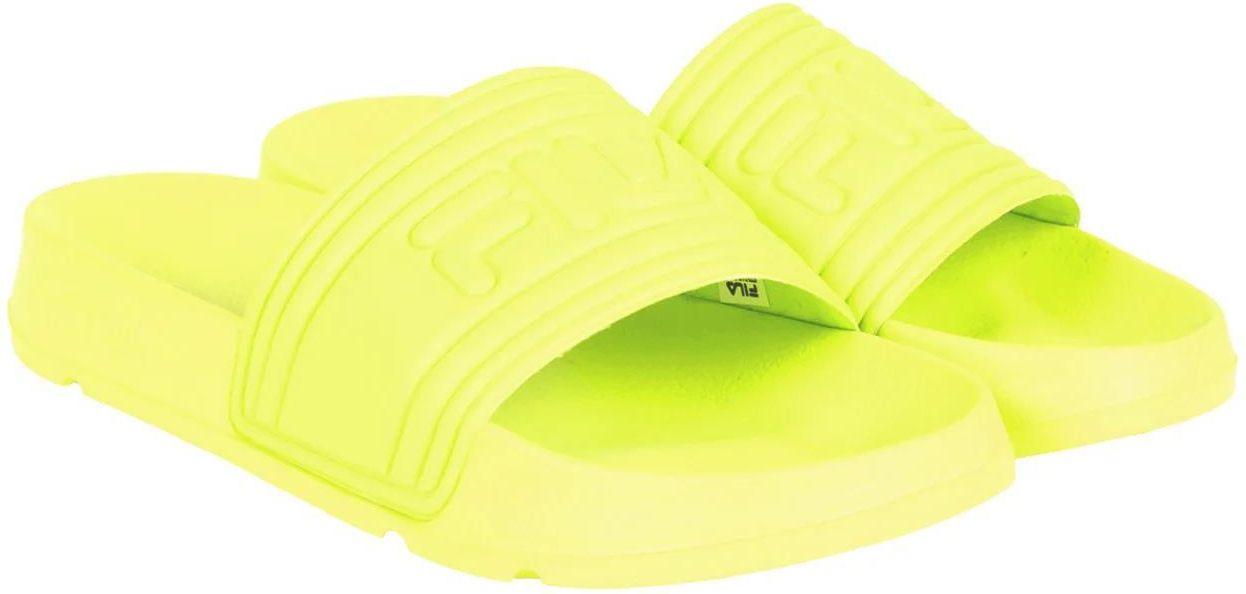 Wygodne klapki damskie marki FilaWykonane z lekkiego tworzywa sztucznegoWyściółka wykonana z pianki,która zapewnia komfortPodeszwa na wysokość 3,5 cmTłoczone logo marki na paskuIdealne na basen lub plażę w upalne dni Marka : Fila | Numer artykułu : FFW0106 | Materiał : 100% Poliuretan | Kolor : Żółty | Styl : | Rozmiar: 36