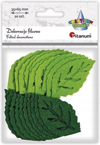 Filcowe liście 65x37mm ażurowe zielone jasne, zielone ciemne 20szt. Wymiary: 160x105x12 mm Opakowanie: blister