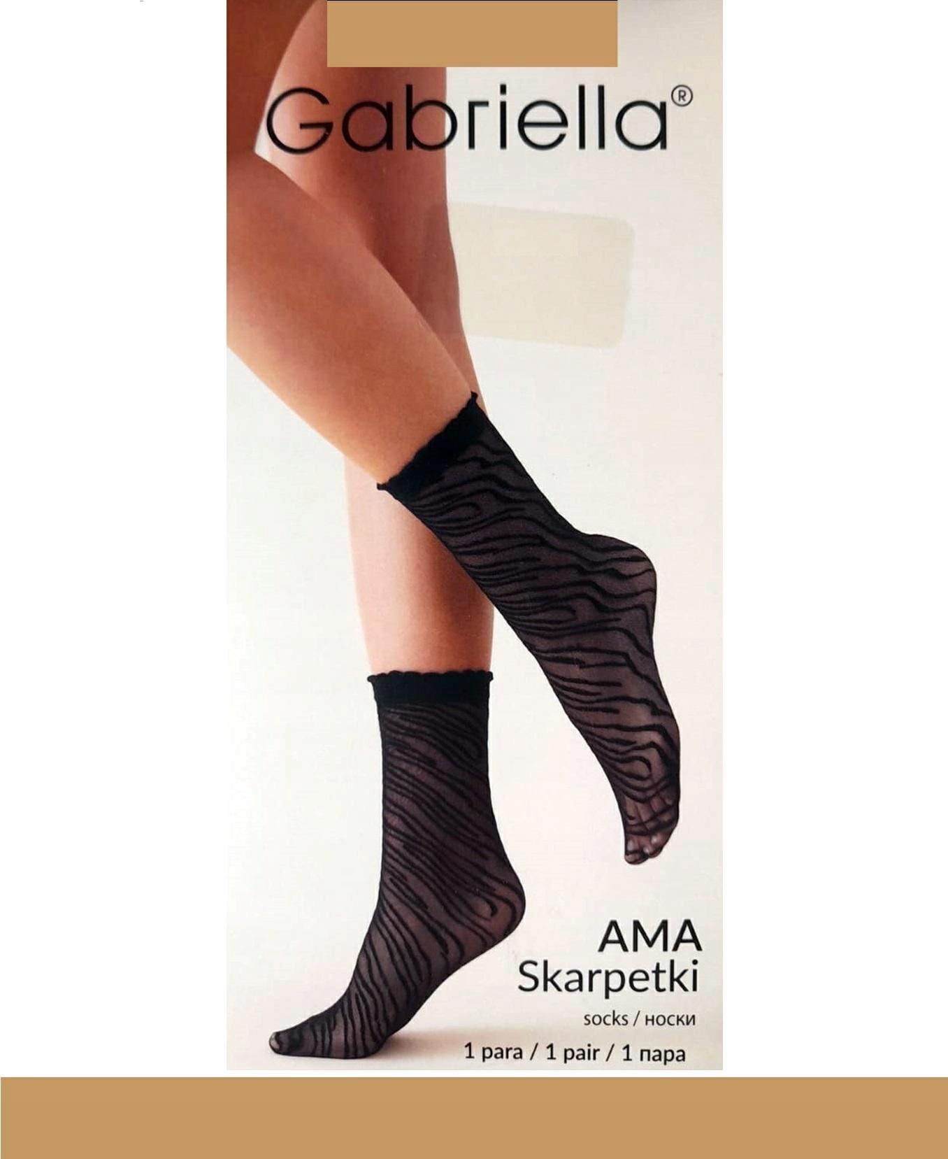 GABRIELLA AMA Skarpetki damskie 20 DEN BEIGE / UNI Skarpetki damskie, rajstopowe, ozdobione fantazyjnym, zwierzęcym wzorem w paski inspirowanym umaszczeniem zebry. Transparentne, matowe, wykonane z najwyższej jakości przędzy. Niewidoczne wzmocnienie na palcach, wykończone ozdobnym, nieuciskającym ściągaczem. Brak zaznaczonej pięty oraz części palcowej pozwala łączyć wzorzyste skarpetki z różnymi butami. Jakość pierwsza. W opakowaniu 1 para. Rozmiar uniwersalny. Skład: 85% poliamid, 15% elastan. Długość stopy 23-27. Polecamy nasze pozostałe ogłoszenia! Wszystkie nasze produkty są nowe z oficjalnego kanału dystrybucji producenta. Oryginalnie zapakowanych produktów nie otwieramy, nie weryfikujemy poprawności kompletacji towaru przez producenta. Staramy się, aby byli Państwo maksymalnie zadowoleni zarówno z produktów jak i z poziomu obsługi. Nasze przesyłki pakowane są w foliopaki - jeśli chcesz otrzymać idealne, nienaruszone podczas transportu opakowanie wybierz opcje dodatkową - "Pakowanie na prezent". Zapewni to radość z opakowania nieuszkodzonego przez kuriera.