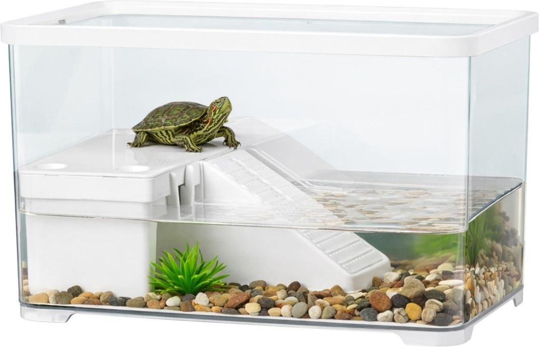 Kruger Meier LagunaVerde Turtle Aquarium - akwarium dla żółwia 🐢 Małe kompletne akwarium z wyspą dla żółwia wodno-lądowego Kruger Meier LagunaVerdeto nowoczesne akwa-terrarium dla żółwia wodno-lądowego– kompletny zestaw „wszystko w jednym”, który łączy akwarium, wyspę z rampą oraz wydajny filtr z …