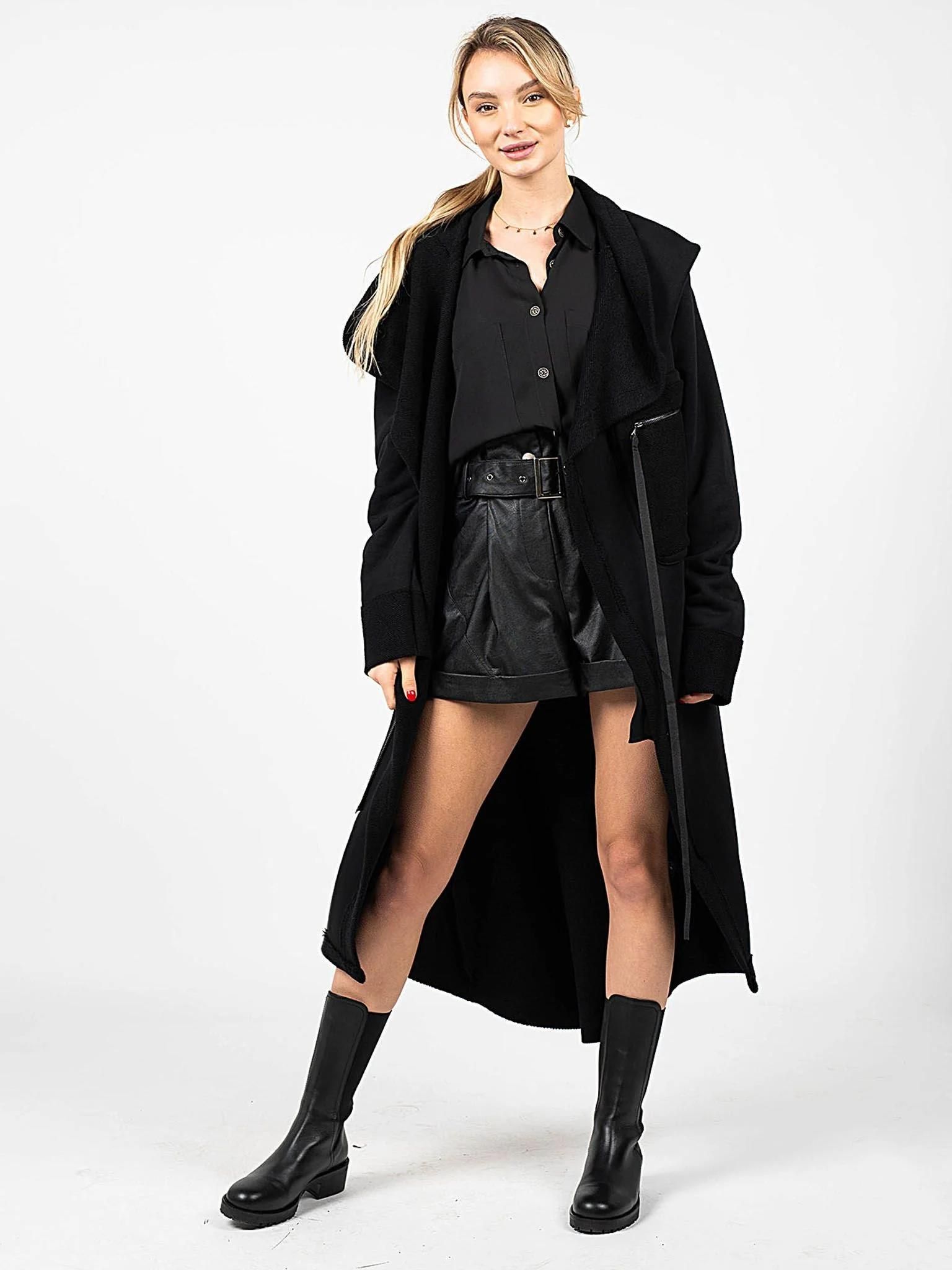 Unisex Prosty, dłuższy fason Z kapturem Zapinany asymetrycznie, na dwukierunkowy zamek błyskawiczny Z przodu naszyta kieszeń, zapinana na zamek Po bokach dwie kieszenie Końcówki suwaków sygnowane Wykonana z połączenia dwóch, wysokiej jakości tkanin Wyprodukowano we Włoszech