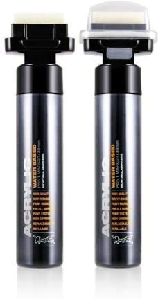 Marker Akrylowy MONTANA Acrylic 30 mm Black S-9000 Marker z farbą akrylową oraz z pompką (pump marker). Marker daje Ci możliwość wykorzystywania właściwości farb akrylowych, z bardziej precyzyjną aplikacją oraz zmniejsza ryzyko ubrudzenia rąk. Przy standardowym użyciu nie wymaga stosowania dodatkowych rozpuszczalników oraz mediów malarskich. Zastosowanie pompki umożliwia Ci regulację ilości tuszu przekazywanego na końcówkę markera. Marker akrylowy Montana Acrylic możesz stosować na różnych powierzchniach: papier, karton, płótno, drewno, kamień, plastik i inne. Gama kolorystyczna markerów Montana Acrylic pasuje do farb w sprayu Montana Gold. Markery możesz wykorzystać do dodawania detali do rysunków stworzonych przy pomocy farb w sprayu. Zaleca się zastosowanie Varnish Montana przed nałożeniem marekera na rysunek stworzny farbą w sprayu, ze względu na inne medium zastosowane w farbach (rozpuszczalnik) oraz markerach (woda). Marker akrylowy Montana Acrylic posiada końcówkę o szerokości 30 mm. Marker akrylowy Montana Acrylic można wielokrotnie uzupełniać tuszami z serii Montana Acrylic. Tusz zastosowany w markerach Montana Acrylic to farba akrylowa na bazie wody. Tusz jest nietoksyczny i nie zawiera rozpuszczalników. Skład jest potwierdzony certyfikatem AP. Tusz Montana Acrylic jest on odporny na: działanie promieniowania UV warunki atmosferyczne ścieranie Aby prace wykonane markerem akrylowym Montana Acrylic były wodoodporne, należy nałożyć tusz na czyste i suche powierzchnie. Każda warstwa farby powinna dobrze wyschnąć. Na koniec należy nałożyć warstawę Varnish Montana.