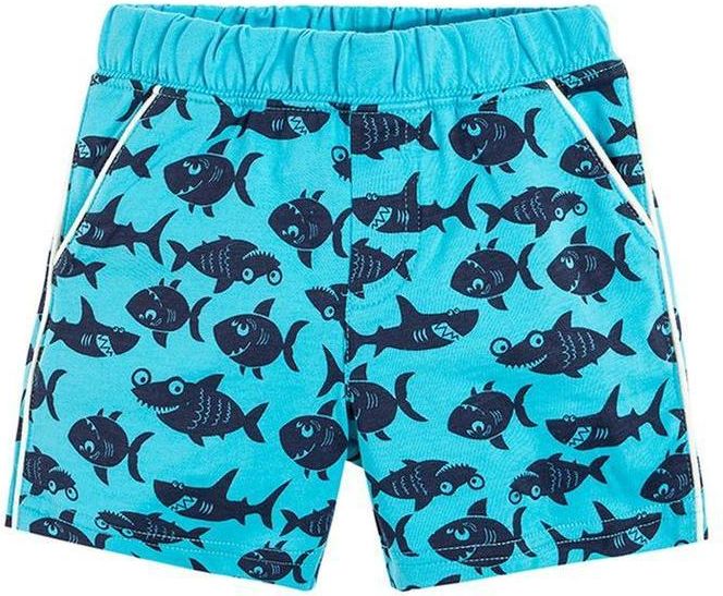 - szorty dla chłopca - 100% bawełna - kolor niebieski - wzór w rekiny - guma i troczek w pasie - kieszenie - pielęgnacja: prać z podobnymi kolorami w temperaturze do 40° C. Prać i prasować po lewej stronie.