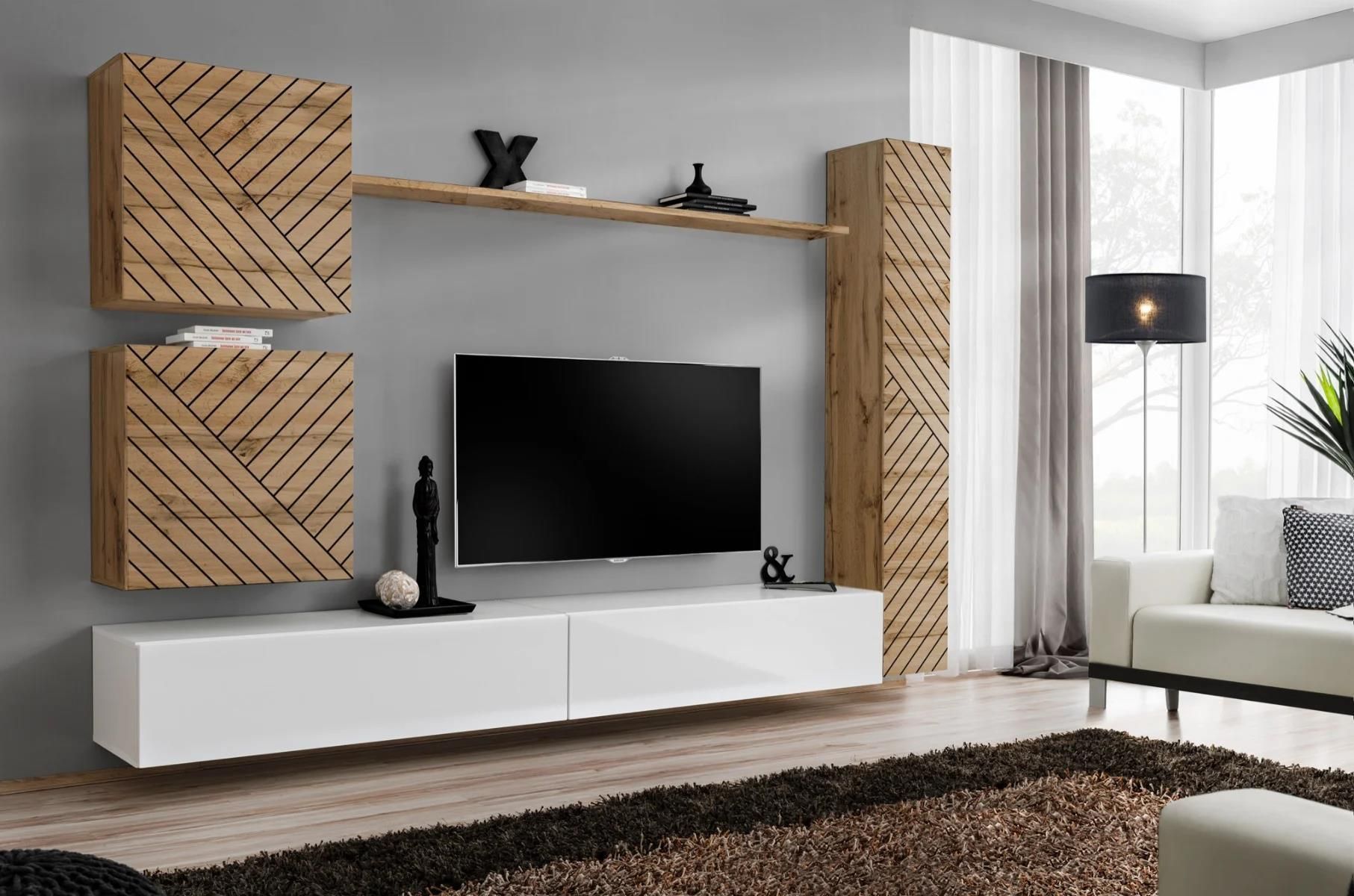 Asm Meble Meblościanka Switch Lamel Viii Dąb Wotan/Biała Drawno