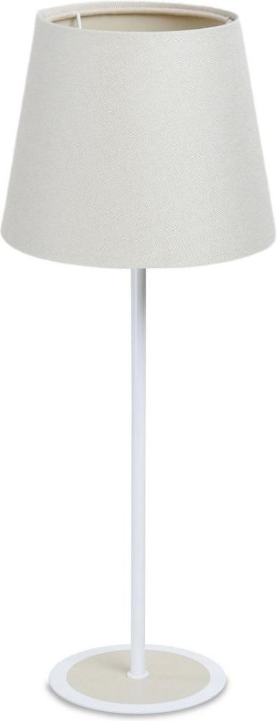 Nowoczesna lampa stołowa ENTURO II do salonu Lampa stołowa ENTURO II łączy w sobie minimalistyczne wzornictwo z funkcjonalnością. Ta niewielkich rozmiarów lampka stanowić będzie doskonałe uzupełnienie wystroju wnętrza zapewniając przy tym odpowiednią dawkę światła wieczorną porą. Abażur lampy stołowej w kształcie stożka wykonany jest z beżowego polipropylenu, czyli tworzywa PP, na który nałożona jest tkanina lniana o kremowej barwie. Dzięki zastosowaniu połączenia tworzywa PP i tkaniny abażur lampki cechuje się dużą odpornością na promieniowanie UV, dzięki czemu nie ulega on odbarwieniu nawet po wielu latach użytkowania. Noga lampki stołowej ENTURO II skonstruowana jest z metalu w kolorze białym z elementami beżu. Podstawa o okrągłym kształcie na jednej nodze zapewnia doskonałą stabilność. Lampka posiada bezbarwny przewód o długości 185 cm wyposażony w wygodny włącznik przesuwny. Do lampy stołowej pasują żarówki E27 o maksymalnej mocy 60 Watt - można także zastosować żarówki LED. Lampa sprzedawana jest bez żarówki. Ten niewielki element oświetlenia wspaniale sprawdzi się w salonie, biurze, a także w sypialni pełniąc funkcję lampki nocnej.Cechy produktuprodukt polski,nowoczesne wzornictwo,abażur w kształcie stożka pokryty tkaniną lnianą,wnętrze lampy z tworzywa PP w kolorze beżowym,podstawa metalowa w kolorze biało-beżowym,do lampy pasuje żarówka E27 max. 60 W,brak żarówki w zestawie,przewód bezbarwny o długości 185 cm z włącznikiem przesuwnym,w swojej ofercie posiadamy szeroki wybór mebli pozwalających na kompleksowe wyposażenie mieszkania