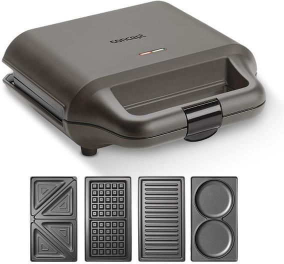 Opiekacz 4 w 1 Concept SV3057 4 w 1 Nieprzywierająca powłoka Łatwa konserwacja Od śniadania po kolację Opiekacz 4w1 Concept SV3057 w eleganckim ciemnoszarym designie pomoże Ci w szybkim przygotowaniu śniadania, obiadu, przekąski i kolacji. Dzięki czterem wymiennym płytom oferuje szerokie …