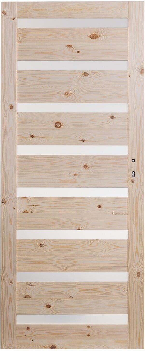 Skrzydło drzwiowe Oktawa - sosna sęczna, firmy Kornik.Jest to doskonałej jakości, drewniane skrzydło drzwiowe lewe, o szerokości 70 cm.Zaokrąglone krawędzie sprawiają, że drzwi prezentują się wyjątkowo estetycznie i elegancko. Natomiast lite sosnowe drewno, z którego są wykonane wnosi do wnętrza przytulną, domową atmosferę.Materiały wysokiej jakości oraz nowoczesne wzornictwo sprawiają, że drzwi znakomicie komponują się z każdym wnętrzem i znakomicie sprawdzą się jako drzwi pokojowe. Drzwi w sprzedaży bez ościeżnic i klamek.