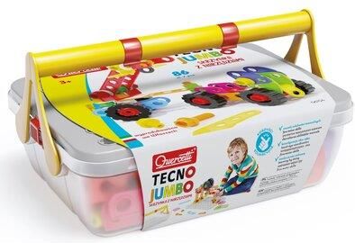 Tecno Jumbo Skrzynka z narzędziami to zabawka konstrukcyjna z zestawem śrubek i nakrętek, pobudzająca fantazję i wyobraźnię dziecka. Do zabawy nie są potrzebne żadne dodatkowe narzędzia. Doskonale rozwija zdolności manualne dziecka. Elementy umożliwiają dowolną zabawę, jednak zestaw zawiera instrukcję pokazującą jak zbudować ciężarówkę z żurawiem, buldożer, żuraw oraz straż pożarną.