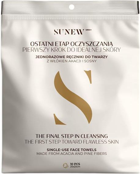 Sunew Med+ Jednorazowe Ręczniki do Twarzy 10 Sztuk Sunew Med+ Jednorazowe Ręczniki do Twarzy to ostatni etap oczyszczania i jednocześnie pierwszy krok do idealnej skóry. Stworzone dla osób, które chcą podnieść skuteczność codziennej pielęgnacji i zadbać o maksymalną higienę twarzy - bez kompromisów. Jednorazowe ręczniki eliminują kontakt skóry z bakteriami, wilgocią, resztkami martwego naskórka oraz detergentami obecnymi w klasycznych ręcznikach. Wykonane z ultrałagodnych włókien roślinnych, są delikatniejsze dla skóry, zmniejszają tarcie i ryzyko podrażnień, wspierając czystą i zdrową cerę. Sunew Med+ Jednorazowe Ręczniki do Twarzy sprawdzą się w domu, w podróży, po treningu lub w gabinecie kosmetycznym. To idealny wybór dla skóry wrażliwej, problematycznej i skłonnej do zaskórników - wszędzie tam, gdzie liczy się czystość, komfort i świadoma pielęgnacja. Korzyści ze stosowania - Maksymalna higiena bez bakterii i wilgoci - Mniejsze ryzyko podrażnień i tarcia skóry - Wsparcie w walce z niedoskonałościami i zaskórnikami - Wygodne rozwiązanie do domu, podróży i po treningu Sposób użycia Po umyciu twarzy delikatnie osusz skórę jednorazowym ręcznikiem. Użyj jednego ręcznika na jedno zastosowanie, a następnie wyrzuć. Stosuj codziennie jako stały element pielęgnacji. Pojemność: 10 Sztuk
