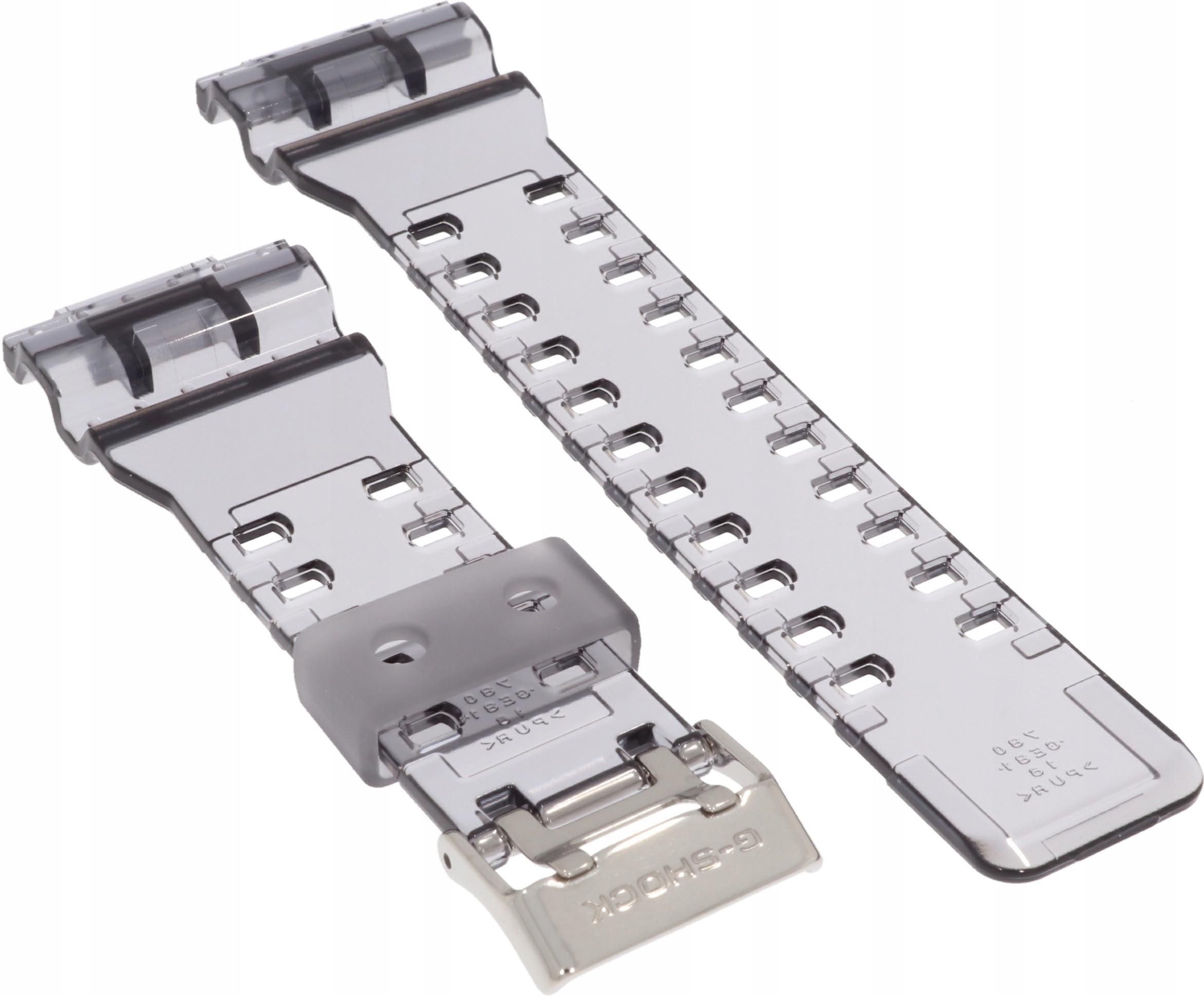 ORYGINALNY PASEK CASIO SPECYFIKACJA: PRODUCENT FIRMA CASIO DO MODELI GA-700 GA-700SK-1A PASEK WYKONANY Z KAUCZUKU KOLOR CZARNY TRANSPARENTNY (odcień koloru może odbiegać od rzeczywistego, jest to zależne od ustawień monitora na, którym przedmiot jest oglądany) KLAMERKA WYKONANA ZE STALI CHIRURGICZNEJ KOLOR KLAMERKI SREBRNY BŁYSZCZĄCY